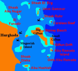Diese Insel, eine der schönsten im Roten Meer, ist berühmt für ihre seltene und einzigartige Naturschönheit, ihre Sandstrände und ihr türkisfarbenes Wasser – ein wahres Paradies auf Erden. Sie entstand vor über drei Millionen Jahren und verdankt ihren Namen ihrer markanten Form: Ihre Ostspitze bildet eine Sandbank, die sich in einer gewundenen, vogelähnlichen Gestalt ins Meer erstreckt. Trotz ihrer relativ geringen Größe gilt sie aufgrund ihrer reichen Korallenriffe und Mangroven als eine der wichtigsten Inseln im nördlichen Roten Meer. Viele Gebiete werden zum Tauchen, für den Tourismus und zum Angeln genutzt, und sie dient zahlreichen Zugvögeln, darunter Möwen, Reiher und Seeschwalben, als Rast- und Brutgebiet. Die Insel erstreckt sich über eine Fläche von 140 Hektar und liegt drei Kilometer östlich von Hurghada. Ihre Landschaft ist geprägt von flachen, erodierten Korallenriffen, markanten Felsvorsprüngen und kleinen Sandbuchten an der West- und Nordküste sowie einem flachen, ebenen Sandstrand an der Südostküste. Die Insel liegt innerhalb des Meeresschutzgebiets Elba, das neben allen Inseln im ägyptischen Sektor des Roten Meeres auch die Region Gebel Elba im Südosten Ägyptens umfasst. Sie zählt zu den mangrovenreichsten Inseln des Roten Meeres; Mangroven und andere salztolerante Pflanzen bedecken mehr als ein Viertel der Gesamtfläche der Insel, die auf etwa 30 Hektar geschätzt wird. Auf einem einzigen Hektar können mindestens 400 ausgewachsene Bäume wachsen, von denen einige eine Höhe von über fünf Metern erreichen. Diese Bäume sind mitunter von anderen salztoleranten Pflanzen wie *Garden*, *Rhet*, *Kharisa*, *Suaeda* und *Malih* durchsetzt oder umgeben, die typisch für Salzwiesen sind. Die Mangroven wachsen entlang einer großen Bucht, die die Insel durchzieht und sich in verschiedene Richtungen verzweigt. Zusammen mit den Mangrovenbeständen an ihren Ufern bildet sie eine wunderschöne Meereslandschaft, die auf keiner anderen Insel zu finden ist. Die Mangrovenbäume in diesem Gebiet zeichnen sich durch ihre Lage auf einer isolierten Insel aus, fernab der Belastungen durch städtische Ausbreitung, Überweidung und menschliche Schadstoffe, was zur Erhöhung der Mangrovendichte und ihres kontinuierlichen Wachstums beiträgt.